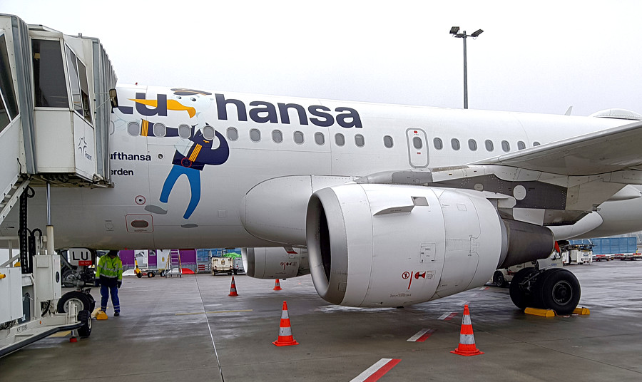 Schon am frühen Nachmittag flogen wir mit Lufthansa nach Frankfurt. Aufgrund des ausgedünnten Lufthansaflugplans hatten wir erst um 22 Uhr einen Weiterflug. Jenni ließen wir im Unklaren, wohin die Weiterreise ging. Ihre Boardkarten hatte ich auf meinem Handy, so dass sie keine Chance hatte, das Ziel vorher zu erfahren. Allerdings haben wir ihr 12 Karten mit Infomationen über das Reiseziel vorbereitet, die wir ihr nach und nach gaben.