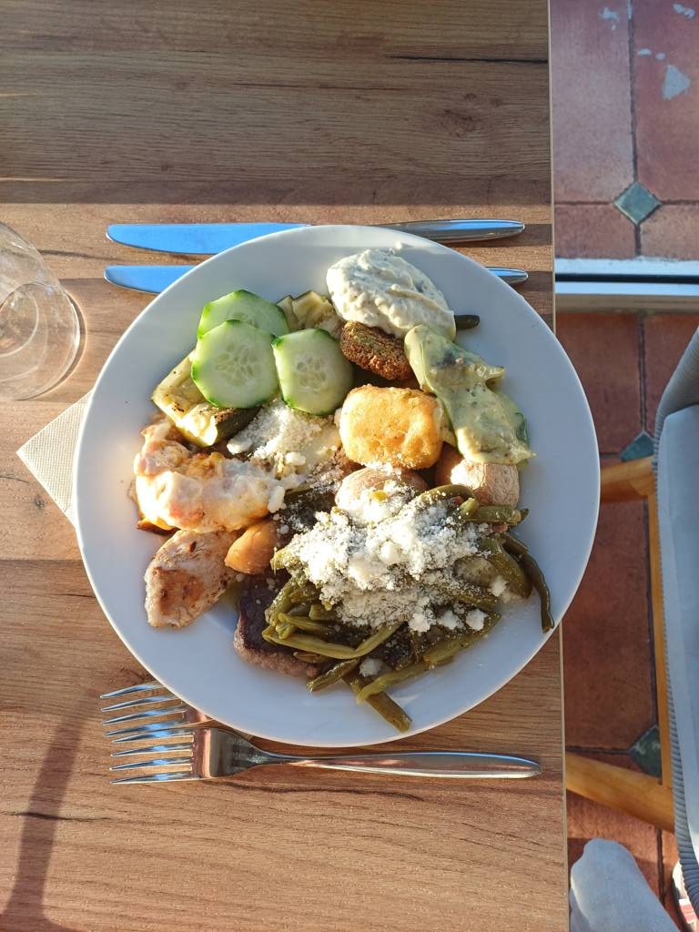 Heute scheint es voll im Hotel zu sein und keine Ausflüge. Kurz nach 10 waren alle Liegen mindestens mit Handtüchern belegt. Sehr nervig. Wir sind daher noch einmal in den Ort. Haben für die letzten Briefmarken die einzigen Postkarten mit drei mageren Motiven gekauft, die es hier am Ort gibt. Alle nicht vom Ort. Ich habe noch nie verstanden,warum man an wunderschönen Orten so nichtssagende Postkarten verkauft.