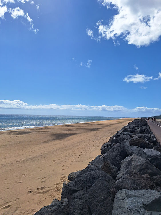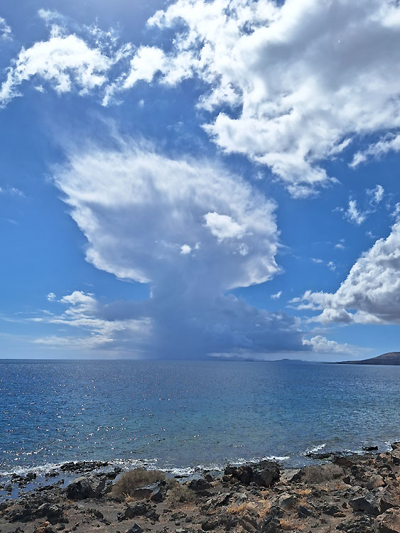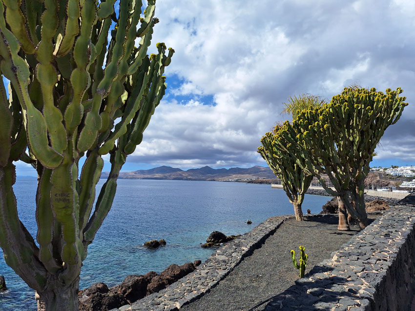 Also statt Rosenmontagsumzug in Arrecife blieben wir erstmal lokal in Puerto del Carmen, wo wir ein schönes Apartment in einer Anlage etwas oberhalb des Playa Grande hatten - ideal, da der Strand in ein paar Minurten zu erreichen ist und sehr schön ist (Chillen beinhaltet für mich auch: So oft wie möglich schwimmen, ob im Meer oder im Pool). Wir unternahmen einen kleinen Spaziergang entlang der Küste in den nächsten Ferienort Puerto Calero, wo wir uns im schönen Hafen einen leckeren Baraquito gönnten - bis es leider in Strömen zu regnen begann. - Tja, das Wetter war uns in dieser Woche nicht so ganz hold: Zu starker Wind, viel zu viel Regen. Nicht normal.