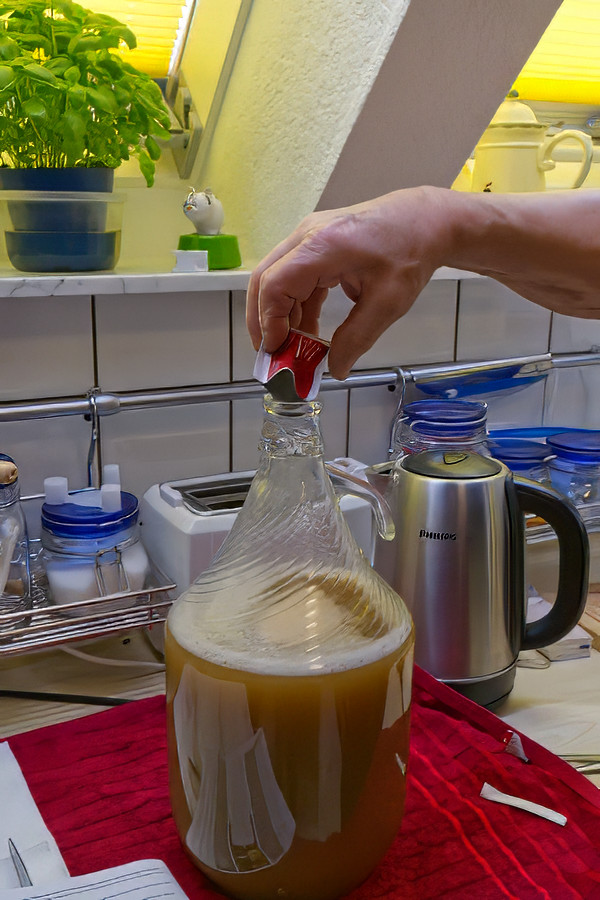 Die Gärflasche mit Gärspund und Stopfen
