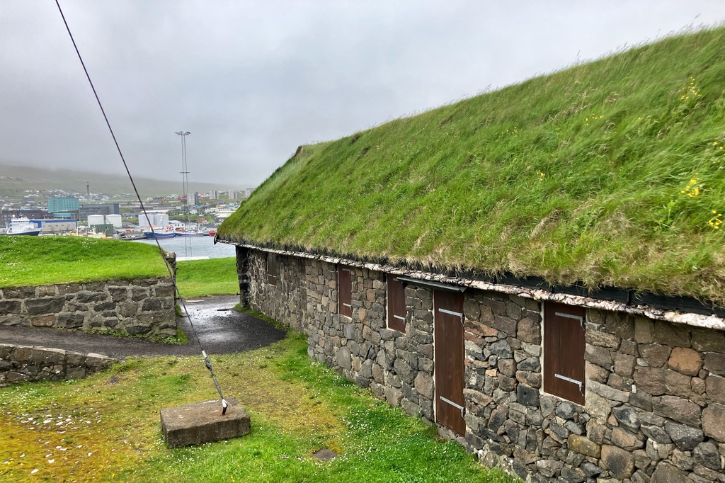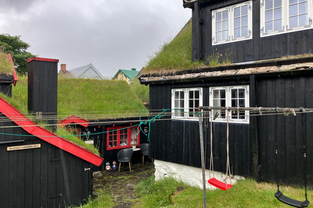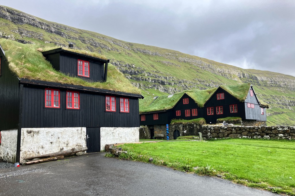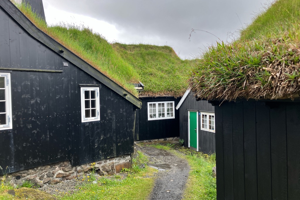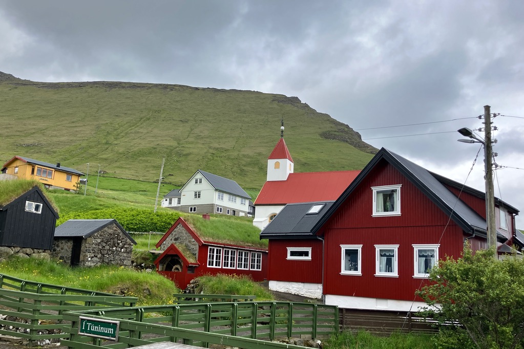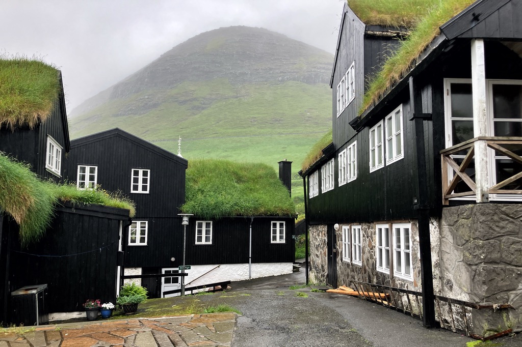 Einen kurzen Lichtblick gab es in dem kleinen Örtchen Kirkjubour. Die schönen Häuschen gehören zu den wichtigsten Baudenkmälern der Färöer.