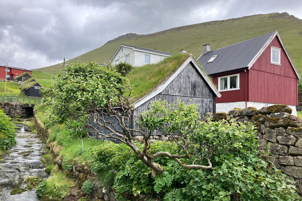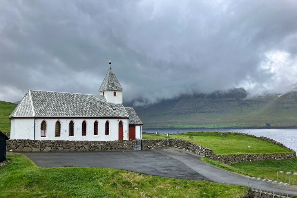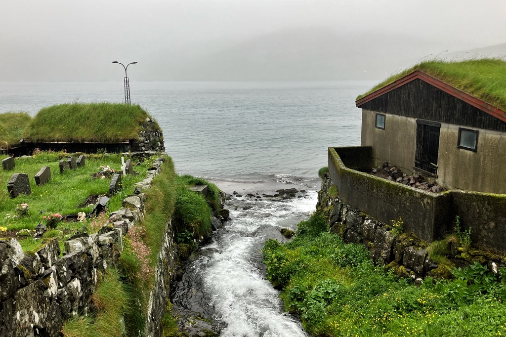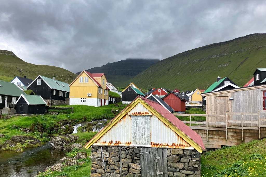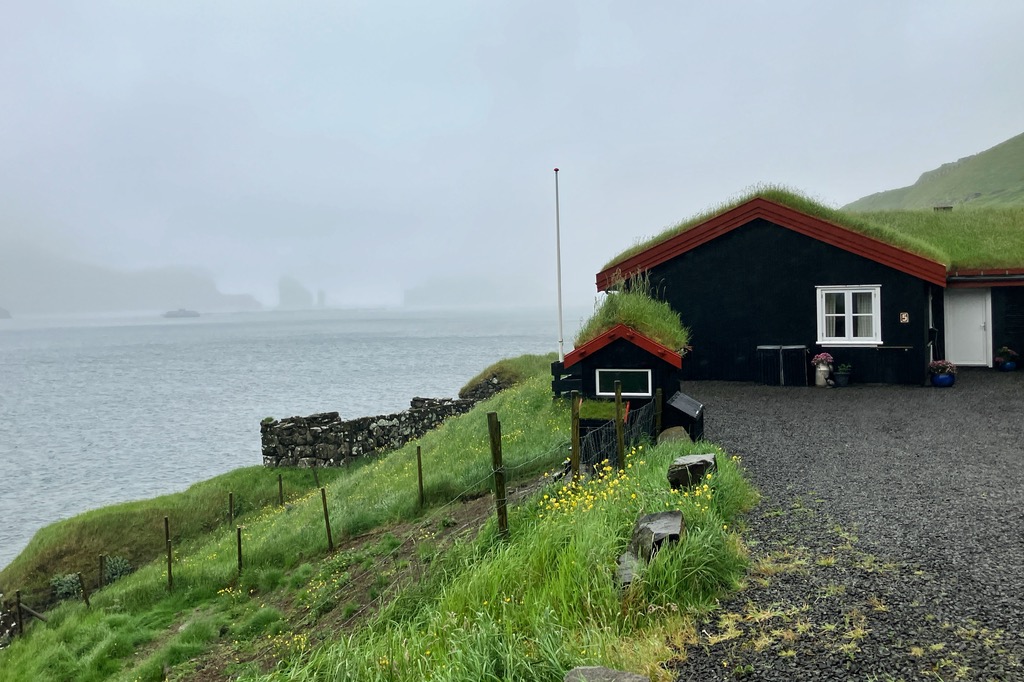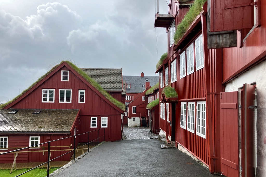 Einen kurzen Lichtblick gab es in dem kleinen Örtchen Kirkjubour. Die schönen Häuschen gehören zu den wichtigsten Baudenkmälern der Färöer.