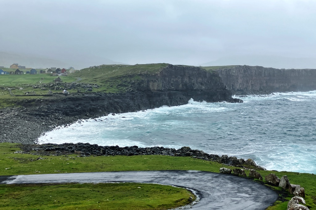 • Auf der Liste gab es noch die Küste der Insel Vidoy. Viðareiði ist der nördlichste Punkt der Färöer und wir hatten die Hoffnung, daß es dort wettertechnisch vielleicht ein wenig besser aussah. Fahrtechnisch sind die Entfernungen auf den Inseln kein Problem, auch dank der Tunnel, allerdings artete es heute in ein ziemlich planloses Herumfahren aus. Aber was will man machen, irgendwo warten und hoffen, daß es besser wird, war keine Alternative. Wir kamen mit den letzten Regentropfen Viðareiði an und danach war erst einmal Ruhe. :thumbup: