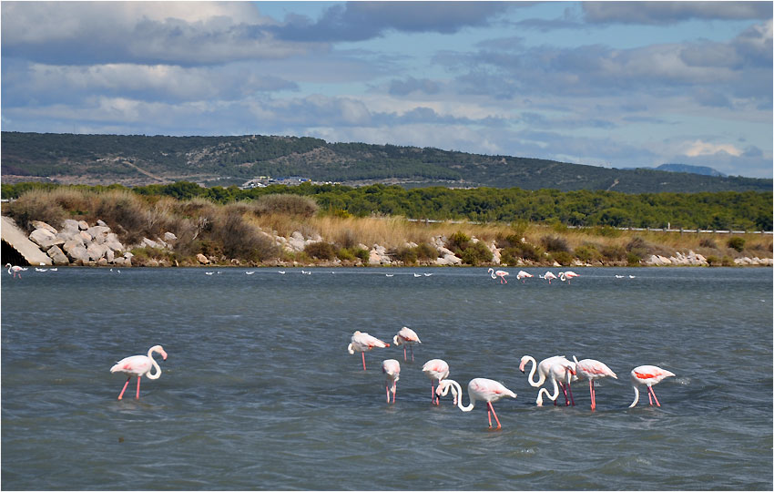 Die uns bis dato unbekannten Orte Le Grau-du-Roi und Aigues-Mortes haben uns gut gefallen: „Grau“ ist schön am Meer gelegen mit tollen Stränden, „Aigues“ hat eine beeindruckende, riesige Stadtmauer aus dem 13. Jahrhundert sowie pinkfarbene Salinen mit Flamingos.