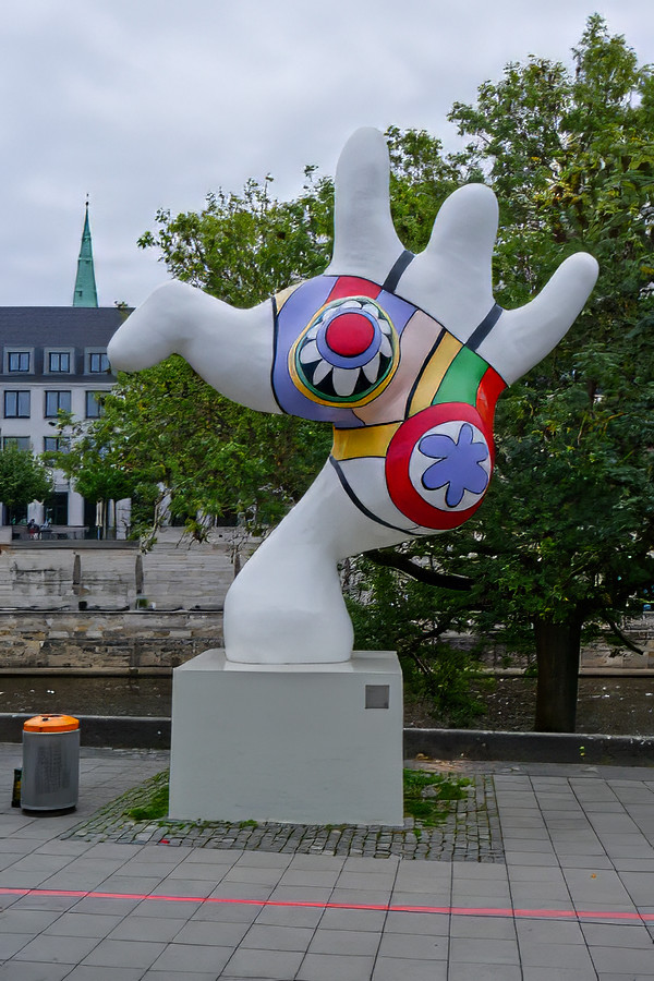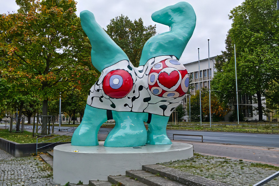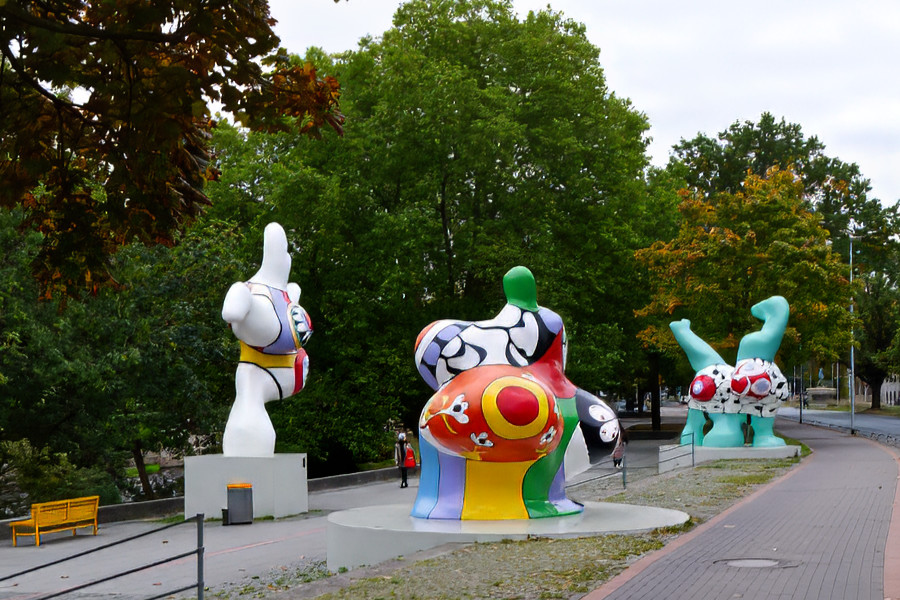 Nach diesem schönen Treffen, bin ich noch ein wenig herumspaziert. Da wir uns im Bistro Anna Leine (direkt am Fluss Leine) getroffen haben, nutzte ich die erste Fotogelegenheit, denn auf der gegenüberliegenden Flussseite stehen die Nanas von der Künstlerin Nici de Saint Phalle. Ich kann mich noch gut an den großen Aufschrei 1974 erinnern, als diese Damen - Charlotte (Bild 2) - Sophie (Bild 3) und Caroline (BIld 4) aufgestellt wurden. Da gingen die Menschen auf die Straße und protestierten. Heute sind sie nicht mehr wegzudenken.