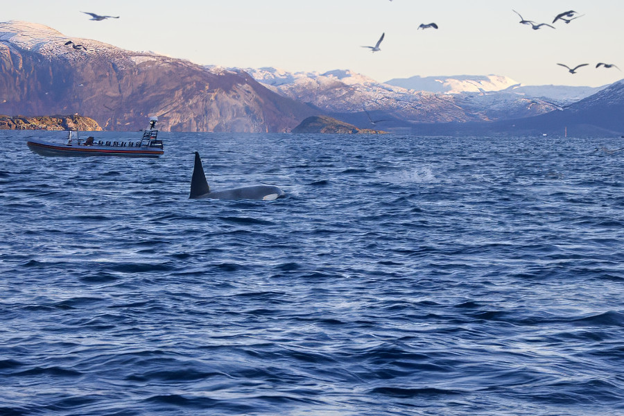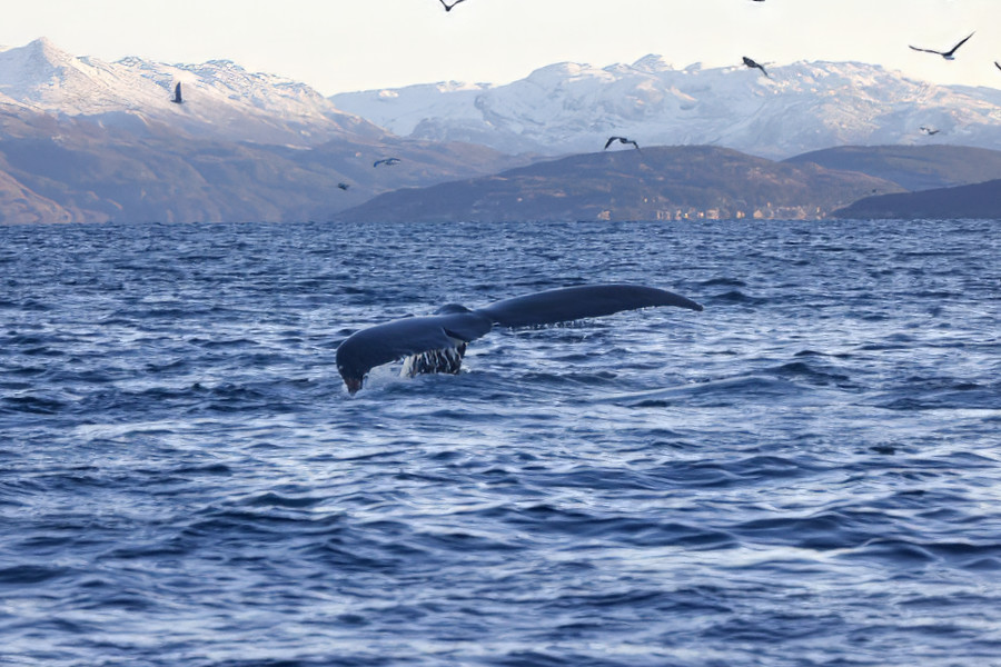 So schnell gingen die Tage vorbei. Noch einmal fuhren wir mit dem Boot hinaus und suchten die Wale und die Orcas. Bei schönstem Wetter konnten wir die Tiere beobachten und fotografieren. Zu unserer Freude ließen sie sich zahlreich blicken. Man wusste manchmal gar nicht, wohin man zurerst schauen sollte. Sie tauchten unter unserem Boo, ließen sich mal rechts und mal links blicken. Manchmal waren sie so nah, dass ich nur einen Teil ablichten konnte.
