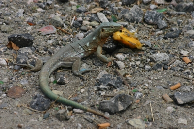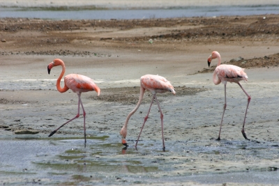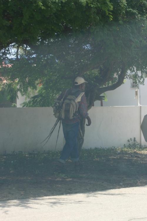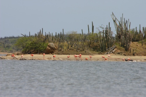 Der Washington Slagbai National Park war das erste Naturschutzgebiet auf den niederländischen Antillen und liegt mit einem großen Areal auf Bonaire. Wenn man den Eintritt bezahlt hat bekommt man einen Umhänger mit einer Karte, die ein Leben lang gültig ist. Wenn also jemand mal nach Bonaire fährt, kann er sich bei uns eine Karte für den Eintritt ausleihen....Das 5463 Hektar große Gebiet nimmt fast den gesamten Nordwesten der Insel ein. Die Fahrt auf einer der zwei Straßen durch den Park zeigt die faszinierende Vielfalt der Inselflora und -fauna. Wir waren froh den Pickup zu haben, denn der Weg ist schon ziemlich rumpelig. Und da gibt es natürlich Kakteen in Mengen und wenn man Glück hat sieht man EIdechsen. Leider haben wir nur kleiner Exemplare gesehen und die großen Riesenechsen dort nicht. Dafür gibt es einen See mit ganz vielen Flamingos. Auf dem Weg zum Park haben wir einen Anhalter mitgenommen, einen älteren Mann der aussah, als stamme er noch von den Ureinwohnern ab. Er hatte ein Bündel über der Schulter, das er hinten auf den Pickup legte, Als ich durchs Rückfenster schaute, stellte ich fest, dass es große Echsen waren..... Auf dem Bild von ihm könnt ihr die Schwänze erkennen
