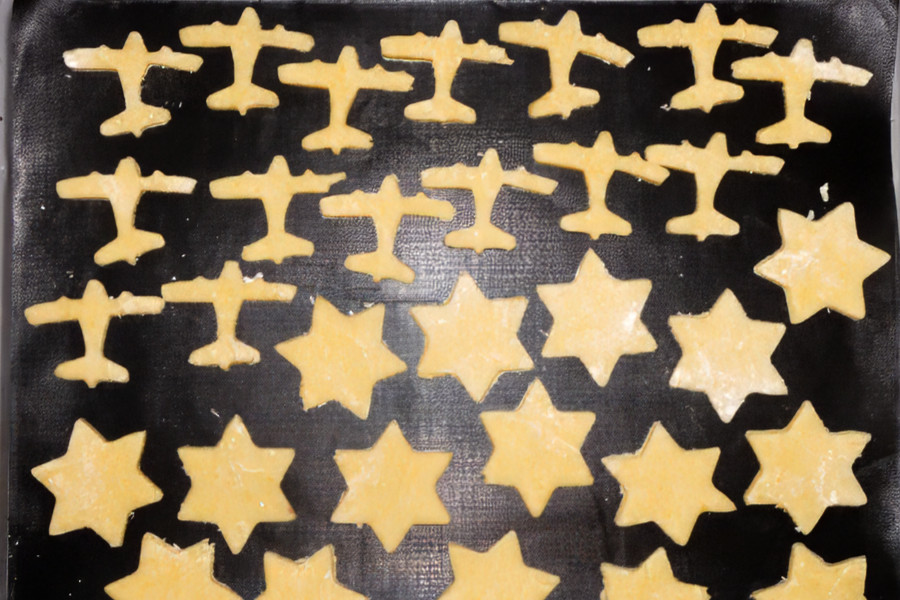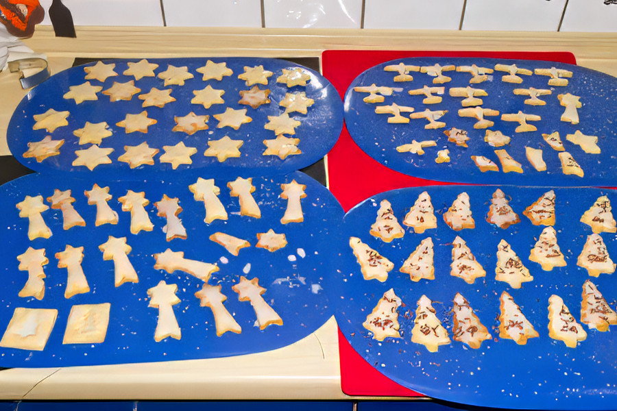 Beim Ausrollen hatte ich dann schon wieder das Problem, dass der Teig auseinanderfiel. Dieses Mal habe ich ein wenig Wasser hinzugegeben und kurz eingearbeitet und siehe da, nun klappte es mit dem Ausrollen und Ausstechen. Auf diese Weise habe ich dann nach und nach die Plätzchen ausgestochen. 3 Bleche habe ich voll bekommen.
