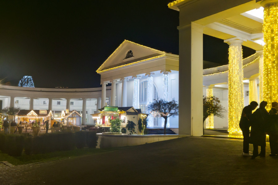 Obwohl wir den Weg ja gut kennen, verfuhren wir uns zweimal. Beim ersten Mal landeten wir im Werre-Park, auch da gibt es eine weihnachtliche Ausstellung, aber da wollten wir ja nicht hin. Beim zweiten Mal bogen wir zu früh ab und kamen wir VOR dem Bahnhof aus und fuhren aus Versehen ein Stück In der Fußgängerzone. Aber es war kein Durchkommen, dicke Poller hinderten uns auf die andere Seite zu kommen. Also wieder umkehren, weiterfahren und Parkplatz suchen. Den Regenschirm vergaß ich im Auto, aber wir hatten Glück, es regnete gerade nicht und somit vermisste ich ihn auch nicht.