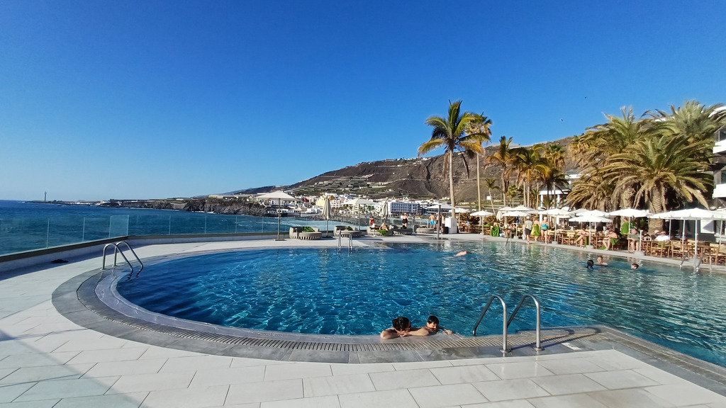 Auf dem Rückweg haben wir dafür das Glück noch einmal einen Blick von oben auf die Stadt zu erwischen, ohne Saharanebel und WolkenDer Rest des Tages dient der Erholung mit Blick auf den wunderbaren Strand von Puerto Naos