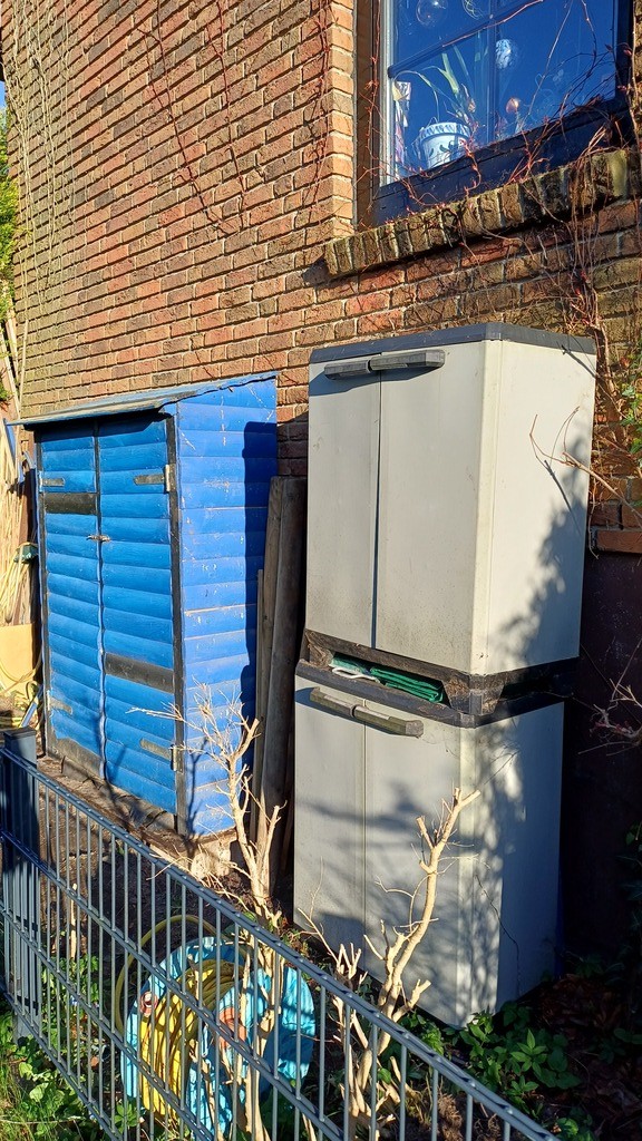 Wir brauchen ein neue Heizung und werden eine Wärmepumpe installieren. Aber auf dem Platz für das Aussengerät steht unser Gartengeräteschrank.
