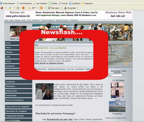 Wenn Du auf meine Seite http://www.petra-kaiser.de gehst, dann siehst Du im Mittelblock eingerahmt kurze Nachrichten, die ich von Zeit zu Zeit neu einstelle.