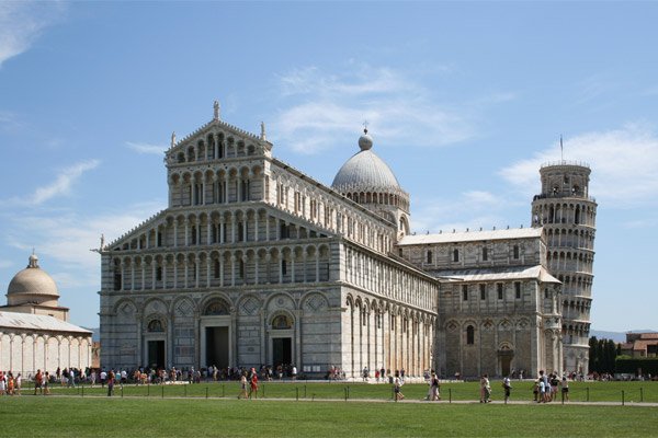 Wer nach Pisa fährt, möchte sicher hauptsächlich den schiefen Turm sehen, der auf dem Platz der Wunder steht. Fast unwirklich auf grünem Rasem stehen die 3 Sehenswürdigkeiten aus alter Zeit, neben dem Campanile ist es noch der Dom und das Baptisterium.