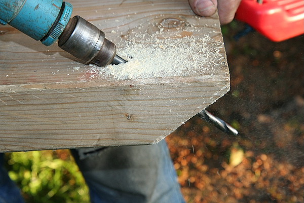 Dann kam die Bohrmaschine zum Einsatz. Da Opa einmal abrutschte und Oma Angst bekam, dass die Bohrmaschine ihr beim Fotografieren in die Hand bohren könnte, hielt sie plötzlich gehörigen Abstand. ;D