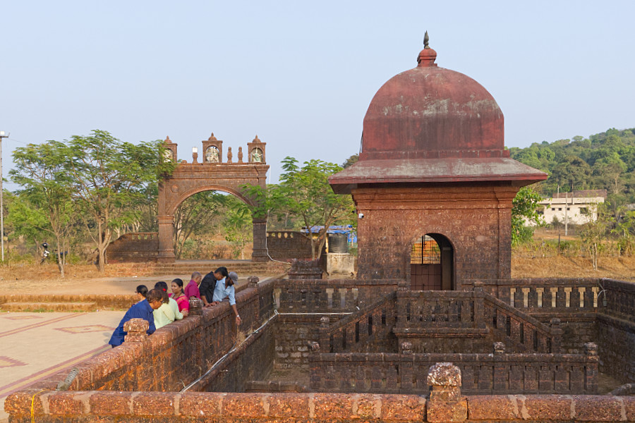 Nach einer kleinen Getränkepause fuhren wir weiter durch den kleinen Ort Kankumbi. Am Ortsausgang gibt es eine sehr schöne Tempelanlage: Shri Mauli Devi Ammana Temple, Kankumbi. Die Tempelanlage umfasst auch ein Wasserreservoir, ein traditionelles rituelles Becken. Es wurde für Waschungen genutzt und auch als Treffpunkt.