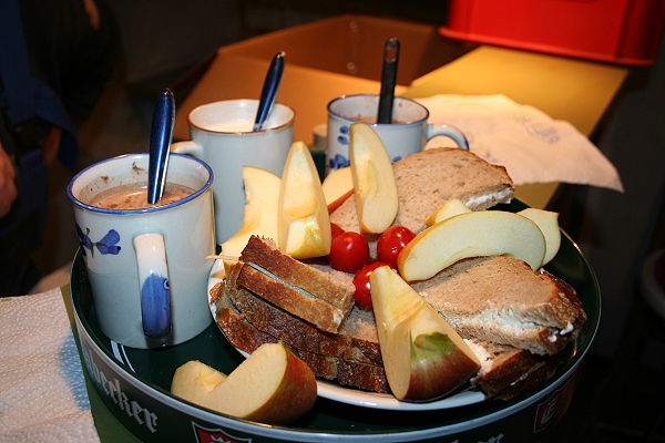 Zwischendurch hatte Petra uns leckere Brote und warme Getränke gebracht.