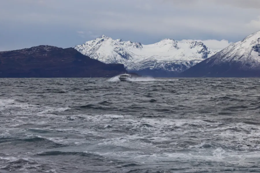 Gestern sind wir mit dem Boot auf die Suche gegangen. Vorher gab es für jeden eine dickgefütterte Latzhose und natürlich auch eine dick gefütterte Jacke. Sie dienten nicht nur zum Schutz gegen die Kälte und Nässe sondern auf als Schwimmwestenersatz