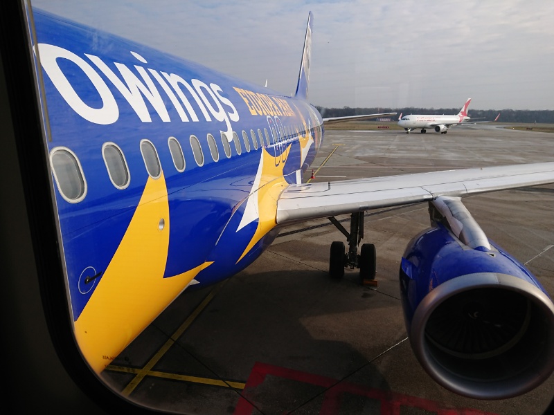 Am nächsten Morgen habe ich mich mit Karin vor dem Eurowings Schalter im Terminal 1 verabredet. Ich hatte uns schon 48 Stunden vorher eingescheckt. Ich hatte mal wieder ziemlich viel Gepäck mitgenommen, hauptsächlich natürlich Fotogepäck, so musste ich doch einiges schleppen.