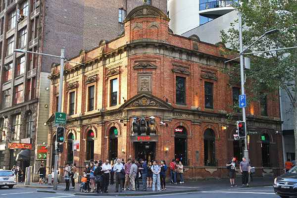 Ja, Sydney ist schon eine tolle Stadt. <$§$ Gestern sind wir dann wieder in die George Street gegangen und ich wollte noch ein Foto rund um machen. Als ich wartete bis auch die Autolücke etwas größer war, ereignete sich just in diesem Moment ein Unfall. Ein Taxifahrer streifte einen Fahrradfahrer, es gab einen großen Knall und der Fahrradfahrer knallte auf die Straße und das Fahrrad flog herum. Schrecklich! Gott sei Dank sind scheinbar beide im letzten Moment über die Kreuzung gefahren, so dass der Fahrradfahrer nich auch noch von nachfolgenden Autos überfahren wurde. Er stand auf, sammelte sein Fahrrad ein, schimpfte und humpelte von der Straße. Der Taxifahrer hielt auch an. Wie der Unfall passierte, das haben wir auch nicht gesehen. Beim Auto war der Spiegel jedenfalls kaputt, den hat der Fahrradfahrer abgerissen.