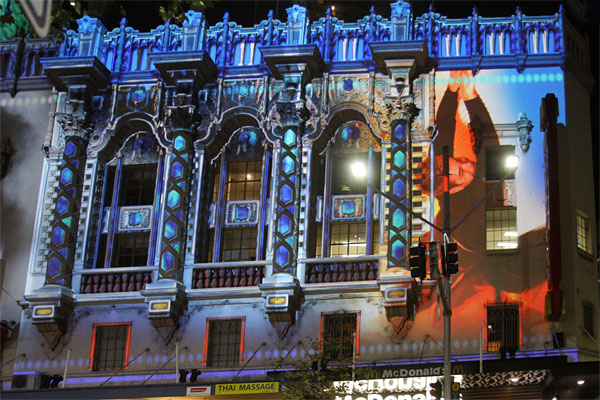 Auf dem Rückweg ins Hotel gab es einen Menschenstau mit abgesperrter Straße. Wir fragten die Security, was los sei und sie meinten nur Premiere des Star Treck Films. Und es wäre extra auf der gegenüber liegenden Häuserfront bunte Bilder projeziert. Aha, und ich dachte schon, was für eine seltsame Fassade.