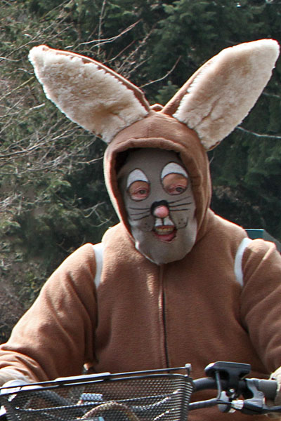 Heute haben wir den Osterhasen gesehen. Er war doch tatsächlich unterwegs und hatte viel zu tun!