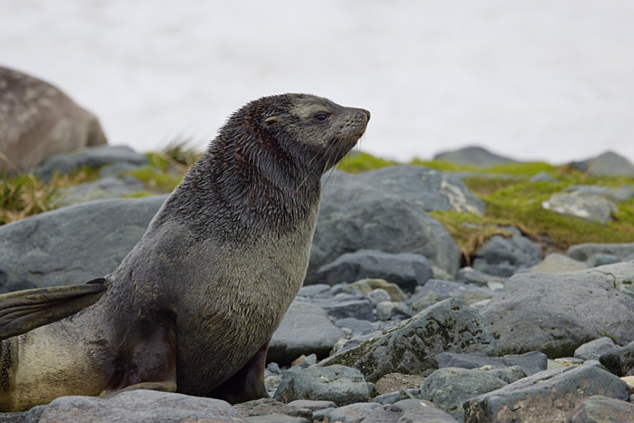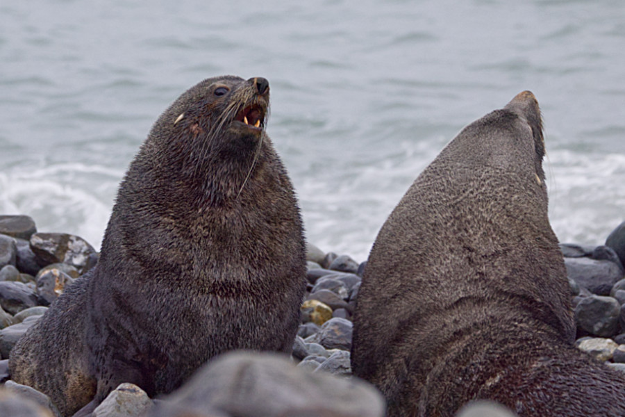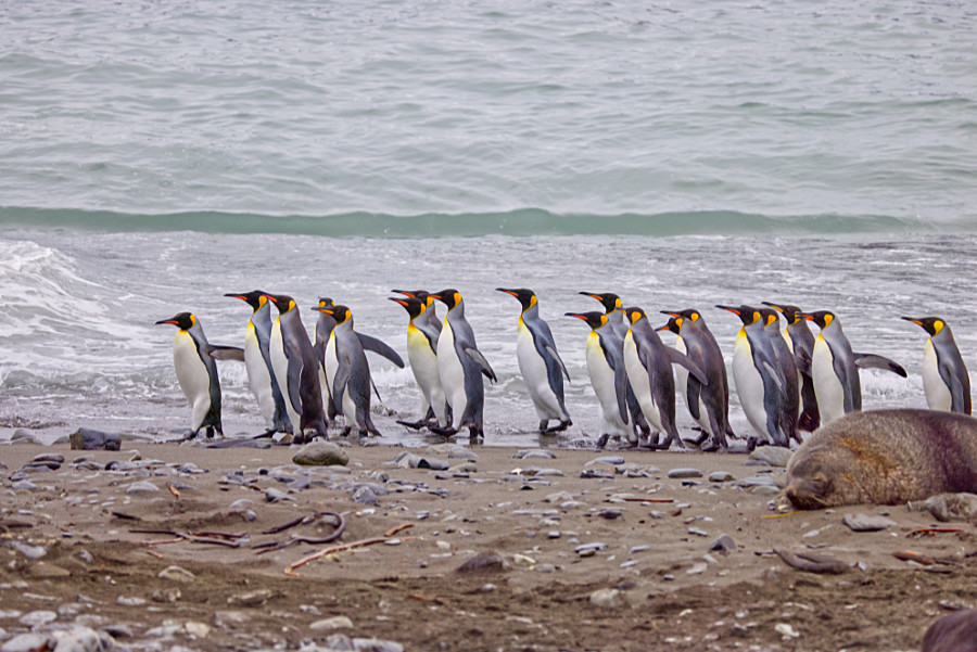 Die Königspinguine hatten wieder ziemliche Problem an den griffigen Pelzrobben vorbeizukommen. Aber auch wir mussten wieder aufpassen, denn sie hatten Junge.