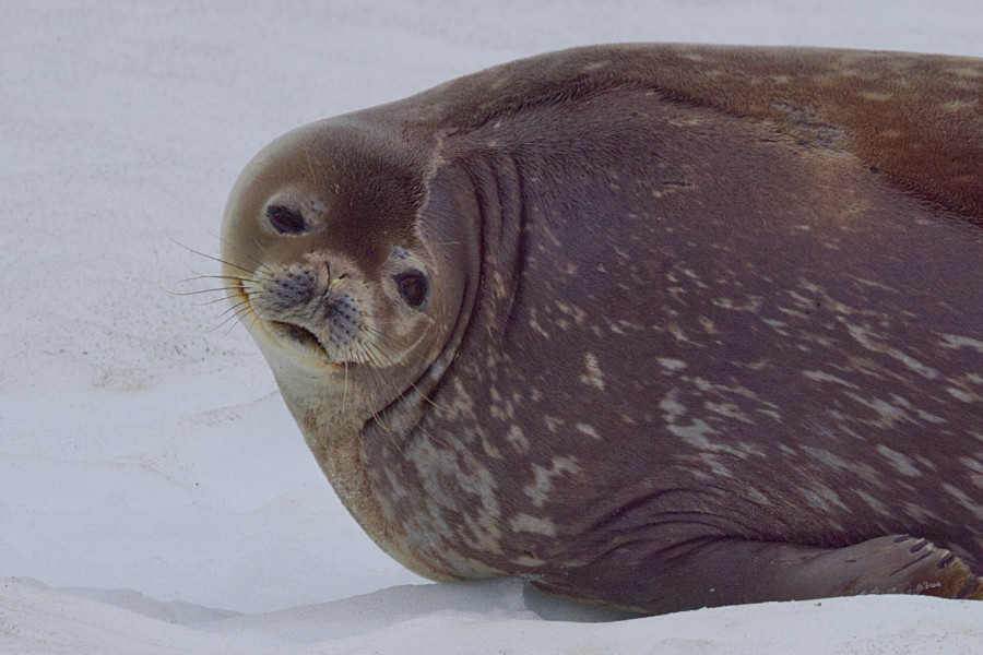 Am Nachmittag steigen wir aber wieder ins Zodiac, Nun fahren wir im Drygalski Fjord. Wir sehen Wedel-Robben, eine Mutter liegt friedlich neben ihrem Nachwuchs, so süß.