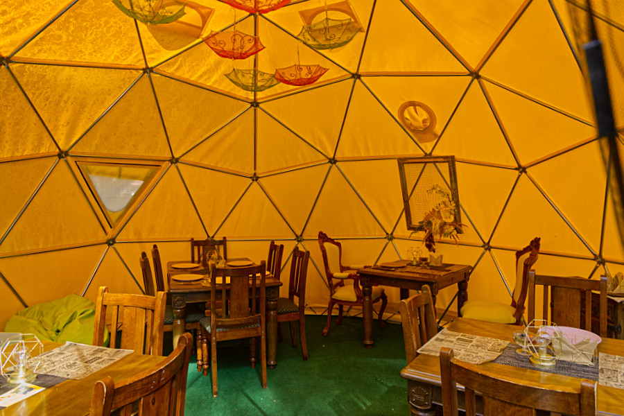 Saßen wir erst draußen,, fing es dann doch an zu träüfeln und wir zogen um ins gemütliche Zelt. Tja und dann prasselte es los, es goß nur so vom Himmel, das geht hier von einer Sekunde auf die andere. Anna kam herein, kassierte ab und meinte, sie müsse ihre Tochter abjholen, aber wir dürfen natürlich sitzen bleiben.