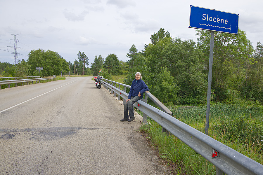 Weiter geht die Fahrt. Bevor wir nach Kemeri fahren, halten wir auf der Brücke über den/die Slocene an, einmal posen.
