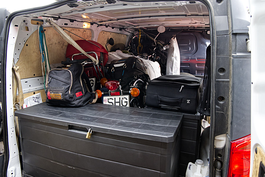 Am 29. Juli fuhren wir los. Da wir unsere zwei kleinen Motorräder auch mitnehmen wollten, packten wir sie in den Vito, zurrten sie fest und hatten nun noch genügend Platz für alles Mögliche. Das nutzen wir auch auch aus.Die Fähre von Travemünde nach Liepaja sollte erst um 23:30 ablegen, wunderbar, denn so konnten wir noch einen kleinen Abstecher bei meiner Schwester und Schwager machen, die in der Nähe von Lübekck wohnen.