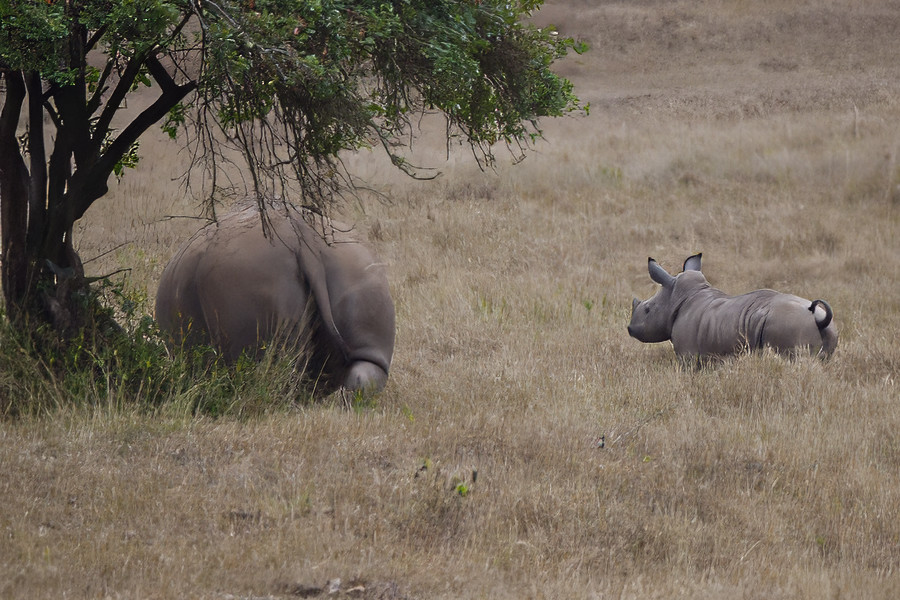 Nashörner nutzen gemeinsame Dungplätze, also Toilettenbereiche. Diese werden markiert und ich habe gelesen, dass der Kot Duftstoffe erhält und so anderen Informationen übermittelt. Wir haben mal an einer Stelle angehalten und wollten Breitmaulnashörner beobachten und fotografieren. Die Tiere waren unruhig, was wir nicht wussten, wird standen zu nahe am Dungplatz und die Tiere ware in "Nöten", weil sie sich ja nicht trauten näher ranzukommen. Aber wir haben das dann erkannt und Platz gemacht.