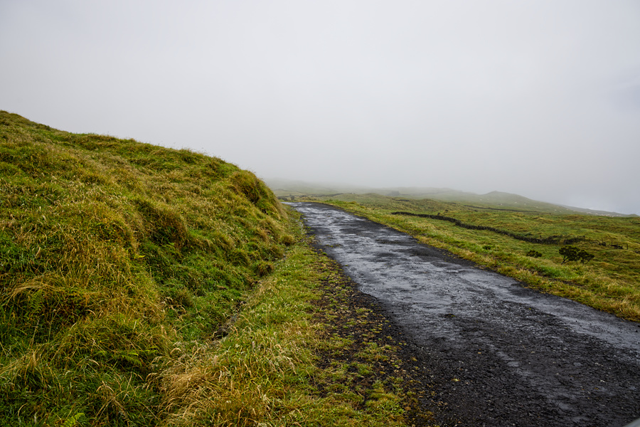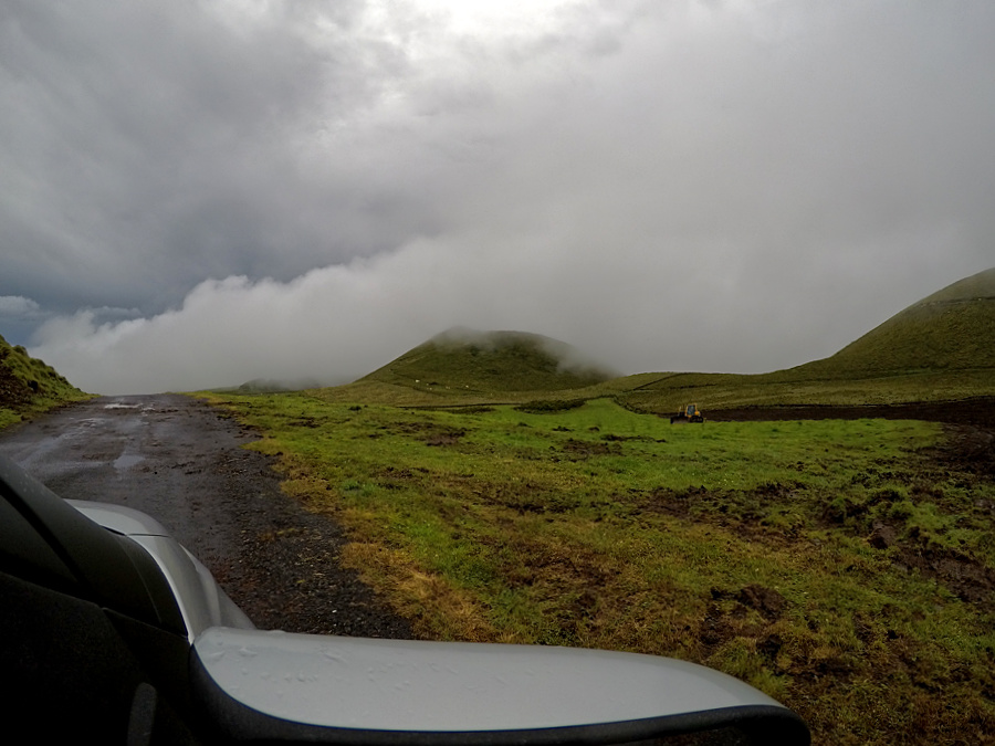 Das Wetter hier oben ist auch nicht sehr gemütlich. Wir fahren noch eine Weile weiter, aber irgendwann wird der Nebel so stark, dass wir kaum noch etwas sehen können. So beschließen wir, dass wir uns einen Weg zur Küste suchen, dieses Mal aber auf die "andere Seite". Die Handy-Navigation funktioniert nicht, aber mit meinem Garmin klappt es.