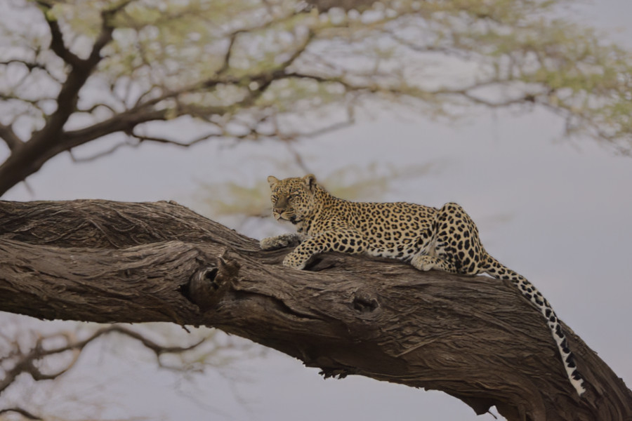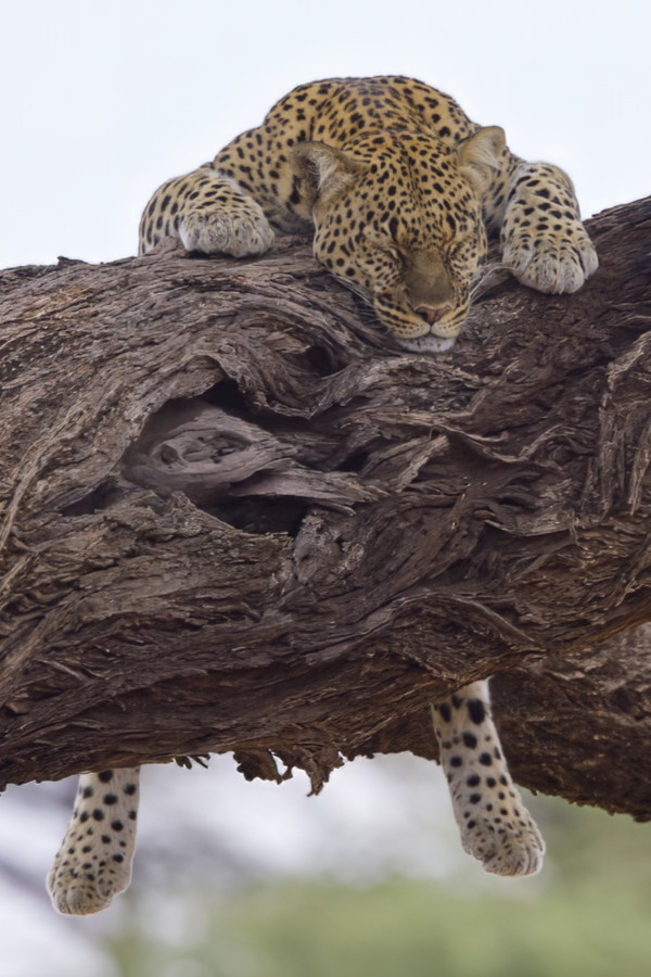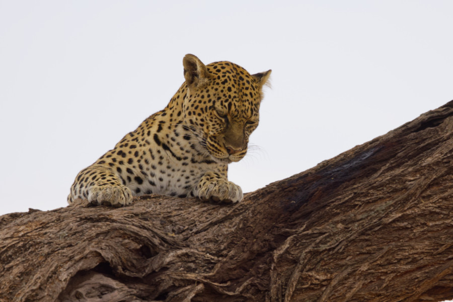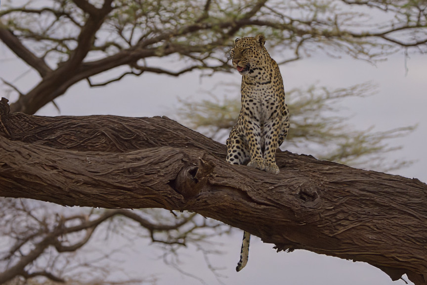 Auf dem letzten Bild im vorherigen Beitrag konnte man schon den Leopard erahnen. Wir sind recht nahe rangefahren und haben den Leopard lange beobachtet. Er ließ sich durch uns überhaupt nicht stören, er war einfach nur müde und wollte schlafen.