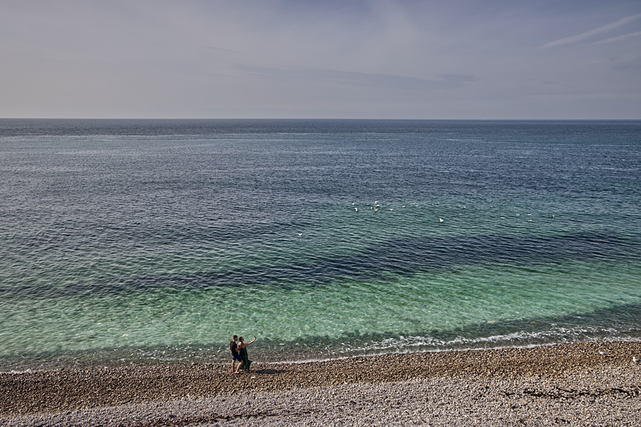 Es dauert ein Weilchen, ehe ich das Cache finde. Ich habe nämlich erst an einer falschen Stelle gesucht. Die Sicht auf die Alabasterküste und den Strand ist wieder toll.
