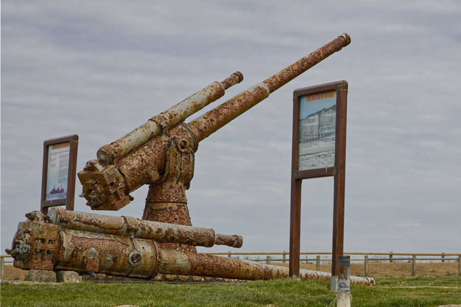 Am frühen Nachmittag gehen wir los, ich habe zwei Geocaches rausgesucht, der erste ist in der Nähe des WW2- Memorial versteckt. Eine schwere Kanone, erinnert an das Schicksal des Schiffs Le Ceron von 1940.