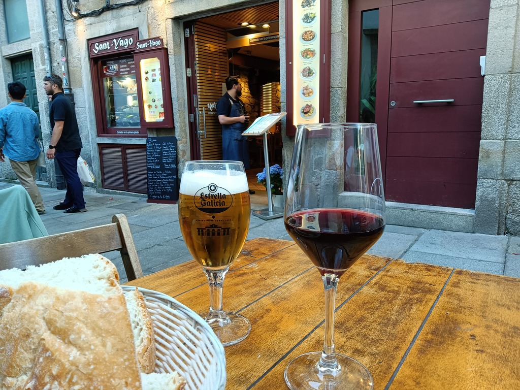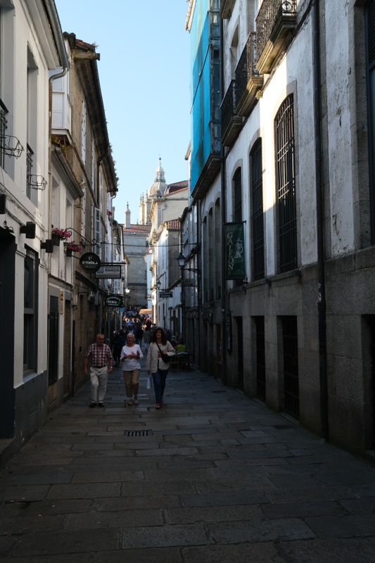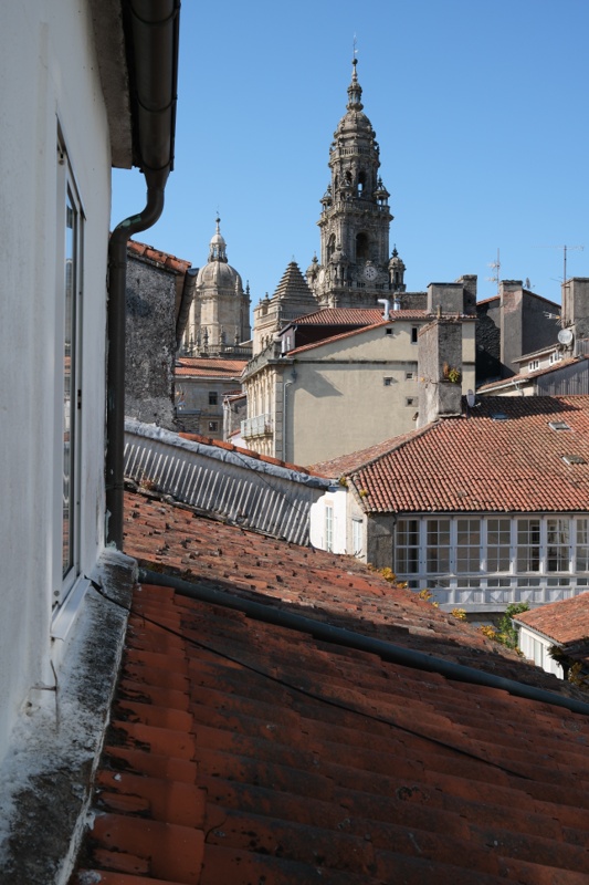 Angekommen in Santiago de Compostela fuhren wir mit dem Bus in die City. Kostenpunkt: 1 €. Der Bus war knackevoll, aber wir ergatterten einen Sitzplatz. Irgendwo in der City stiegen wir aus und fanden mit Hilfe von GoogleMaps unsere Unterkunft. Dreimal mussten wir über dieselbe Straße an derselben Ecke laufen, dann hatten wir´s kapiert.