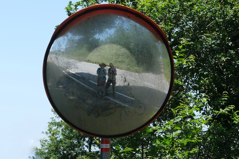 Diese Etappe hatte es in sich, es war nicht nur heiß mit Temperaturen über 30 Grad, sondern es ging auf sehr steil nach oben. Jedes Mal, wenn wir eine Kurve sahen, meinten wir erleichtert, jetzt sind wir oben, ber es ging immer noch höher.