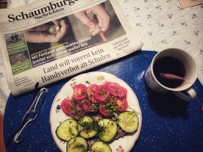 Wir haben einen dunklen Platz im Abstellraum gesucht. Dort kann die Hefe nun in Ruhe den Zucker in Alkohol umwandeln.