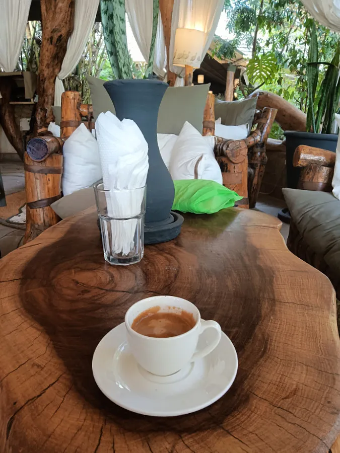 Die Bilder 3-5 habe ich mit dem Handy aus dem fahrenden Jeep gemacht. Zurück im Camp klopften wir den Staub ab, was allerdings nicht viel nutzte. Gott sei Dank habe ich mir ein paar Einkaufsbeutel mitgenommen, die zumindest einen kleinen zusätzlichen Schutz boten. Nach dem Mittagessen sicherte ich Bilder, lud Akkus auf und wir hatten sogar noch ein paar Minuten Zeit, um einen schnellen Kaffee zu trinken, der ganz sicher "Tote" aufwecken konnte.