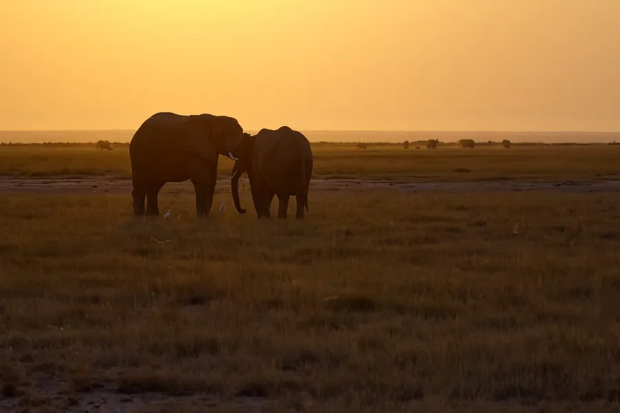 Der Amboseli National Park ist 392 km² groß und befindet sich im Südwesten Kenias, unweit der Grenze zu Tansania. Es gibt keine Zäune, so dass sich die Tiere ungehindert von einem Land zum anderen bewegen können. Für die Elefanten ein Dilemma, denn in Tansania dürfen sie gejagt werden, während sie in Kenia sicher sind.