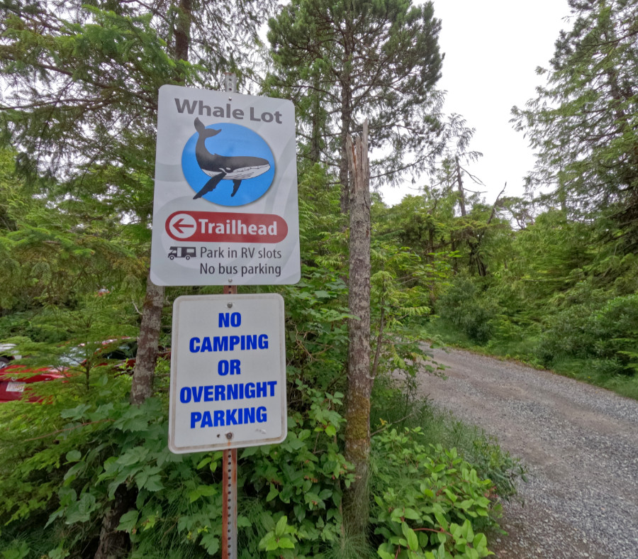 Neben Bären und Wölfen leben auf Vancouver Island auch 600 - 800 Pumas (cougar / Berglöwe) Es gibt 2 große Parkplätze, wir nahmen den "Whale Lot" und marschierten los.