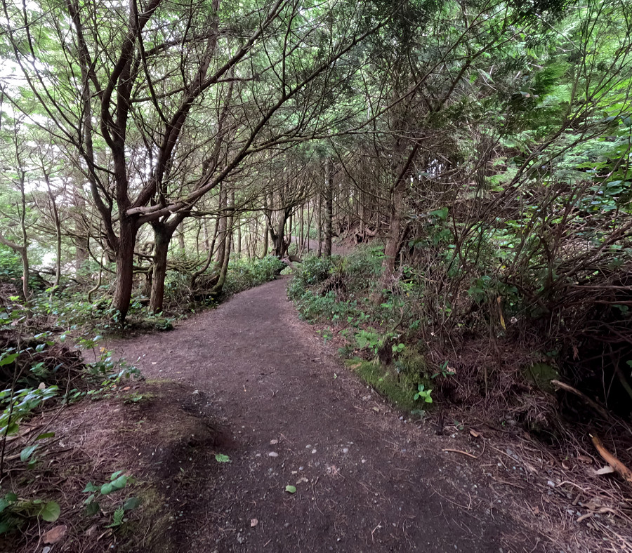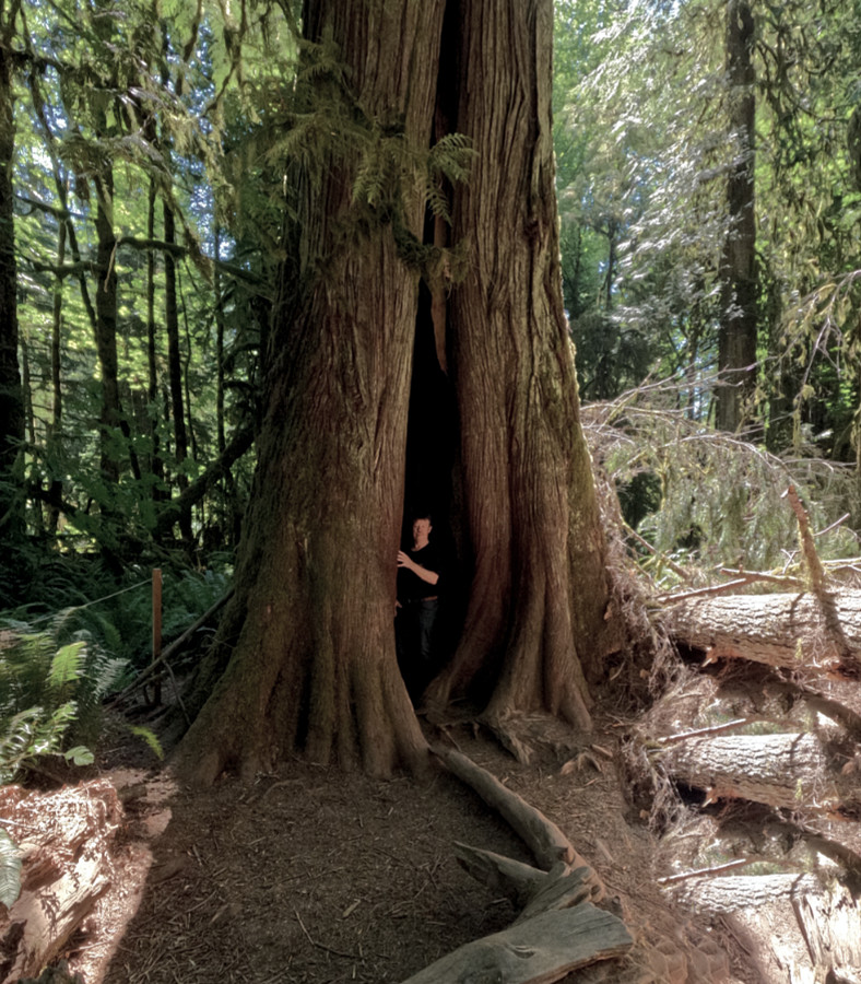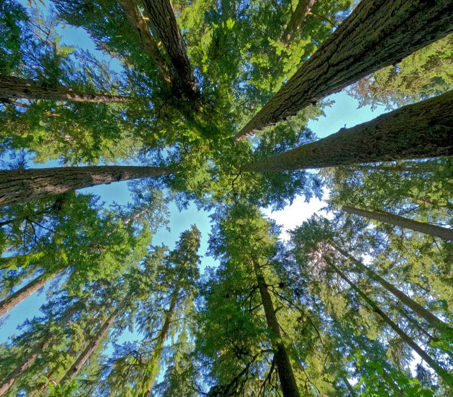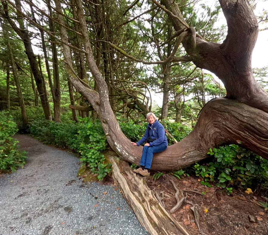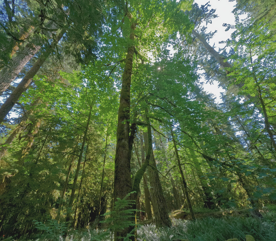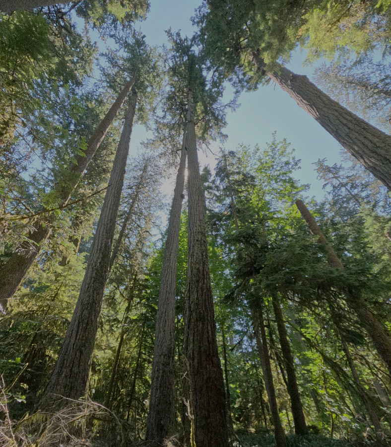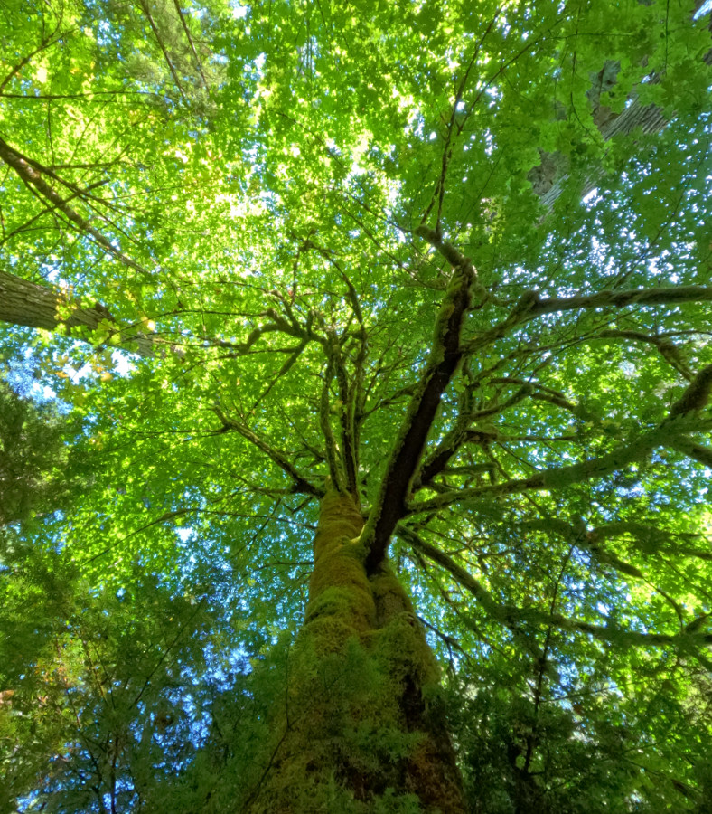Was für ein Wald, wir staunten über die riesigen Douglasien. Sie werden bis zu 80 m hoch, sind oft mit Flechten behangen und haben einen Umfang von bis zu 9 Metern. Es ist wie im Märchenwald. Immer wieder muss ich in die Höhe schauen. Einfach wunderschön!
