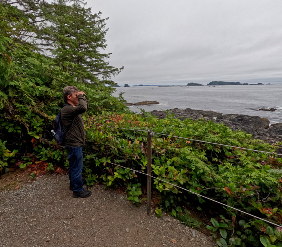 Als wir am Morgen des 3.8. aus dem Fenster schauten, war es wieder sehr nebelig. Eine tiefe Dunstglocke hing über Ucluelet und es sollte sich auch den ganzen Tage nicht ändern. Auch die Temperatur mit zunächst 14 Grad ließ mich nicht gerade vor Freude aufjauchzen. Ich hatte aber genügend warme Sachen mit, daher war das kein Problem und zumindest regnete es nicht!