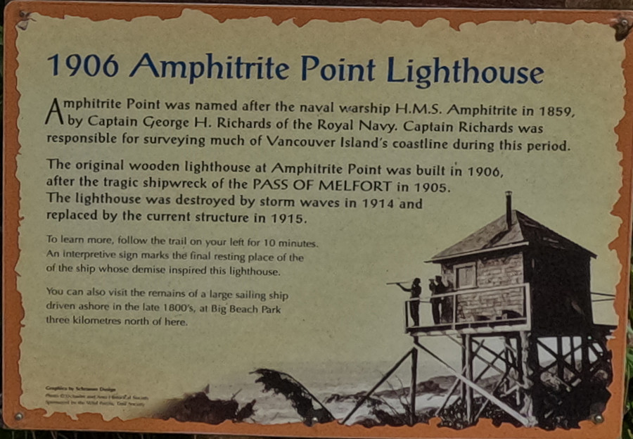 Die Strecke ist sehr schön und auch sehr einfach, da fast alles ebenerdig verläuft. Alle paar Meter gibt es schöne Aussichten aufs Meer und immer steht auch eine Bank da, so dass man alles genießen kann. Wie lassen uns Zeit mit dem Rundgang. Wir halten auch Ausschau nach Walen, aber wir entdecken keine. Der Amphitrite-Leuchtturm ist nicht der ursprüngliche, der 1906 an dieser Stelle gebaut wurde, weil es ein schweres Unglück gab und ein Schiff sank.