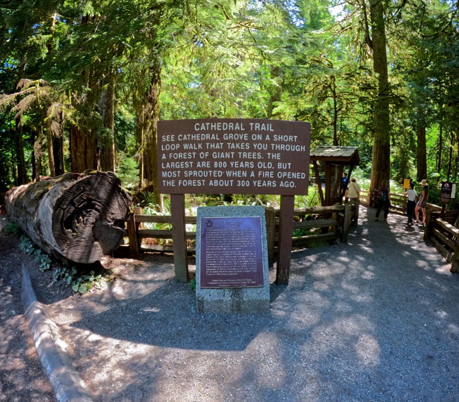 Den nächsten Stop machten wir am Cathedral Grove. Schon auf dem Hinweg haben wir die vielen Autos gesehen, die am Straßenrand parkten. Hier muss irgendetwas Besonder sein. Ich ließ mich von dem Wort Cathedral in die Irre führen. Es gab überhaupt keine Kirche hier, sondern es war ein Domhain, ein Wald.