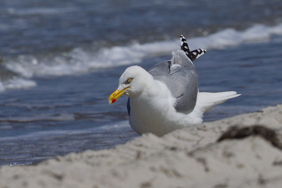 An der Steilküste gibt es sehr viel Schwalben, die hier brüten. Ein paar Mal habe ich versucht, eine im Flug zu erwischen, nö, sie waren einfach zu schnell, flogen zickzack, da kommt ja noch nicht einmal das Auge nicht mit, wie soll man das dann mit dem Fotoapparat schaffen? Zu einem Möwenbild hat es dann noch gereicht.