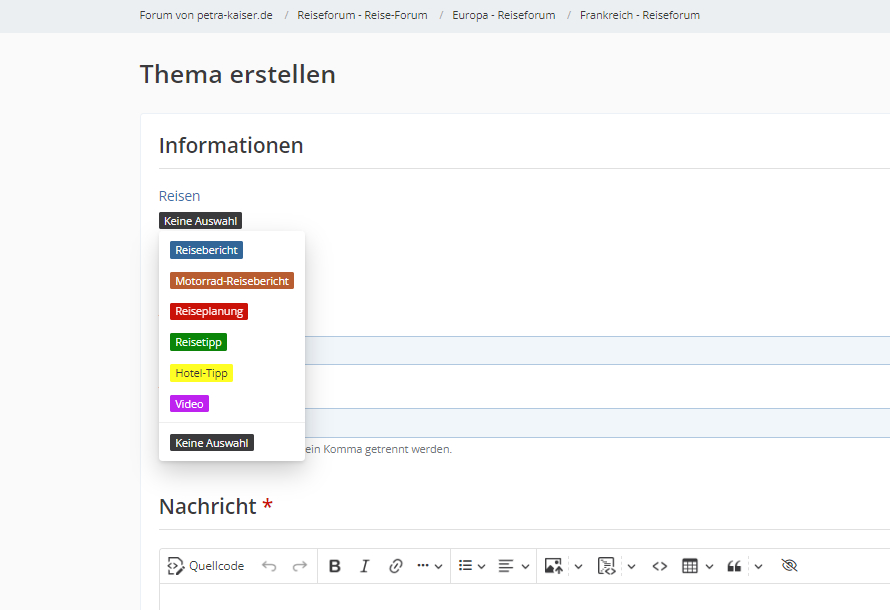 um schnell einen Überblick der einzelnen Beiträge in den Reiseforen zu bekommen, habe ich schon vor einiger Zeit eine Label-Liste erstellt mit folgenden Labeln: