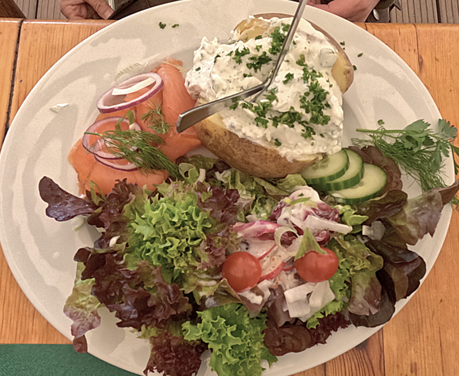 Wir gingen aber zunächst in das ehemalige Café, um ein leckeres Stück Torte zu verspeisen. Allerdings gab es jetzt kein Café mehr, aber wir bekamen eine leckere Alternative. Ich bestellte mir warmen Apfelstrudel mit Eis und Sahne, das war vielleicht lecker! Karin und Kathrin liebten es deftiger.