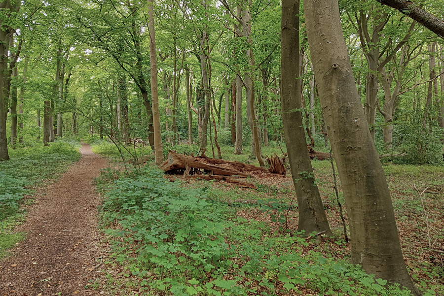Karins Stiche lösten wirklich irre Reaktionen aus. Die Hand schwoll bedenklich an, da war die Entscheidung, den Wald zu verlassen, schon die richtige. So mache ich nur schnell ein paar Handy-Bilder.