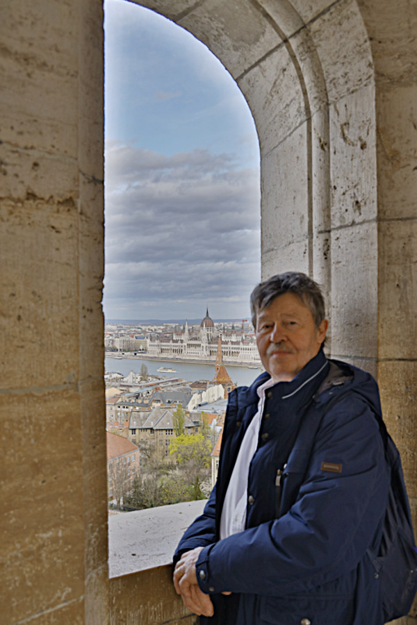 Langsam taten mir die Füße weh und ich hatte auch Hunger. So machte ich ein letztes Panoramabild von der Fischerbastei mit der GoPro und dann suchten wir uns eine Fahrgelegenheit zu irgendeinem Restaurant. Ich wollte nicht mehr zu Fuß den Berg hinunter gehen und hier oben gab es nichtsa an Lokalitäten, was uns ansprach. Friedrich meinte Burger wäre gut.